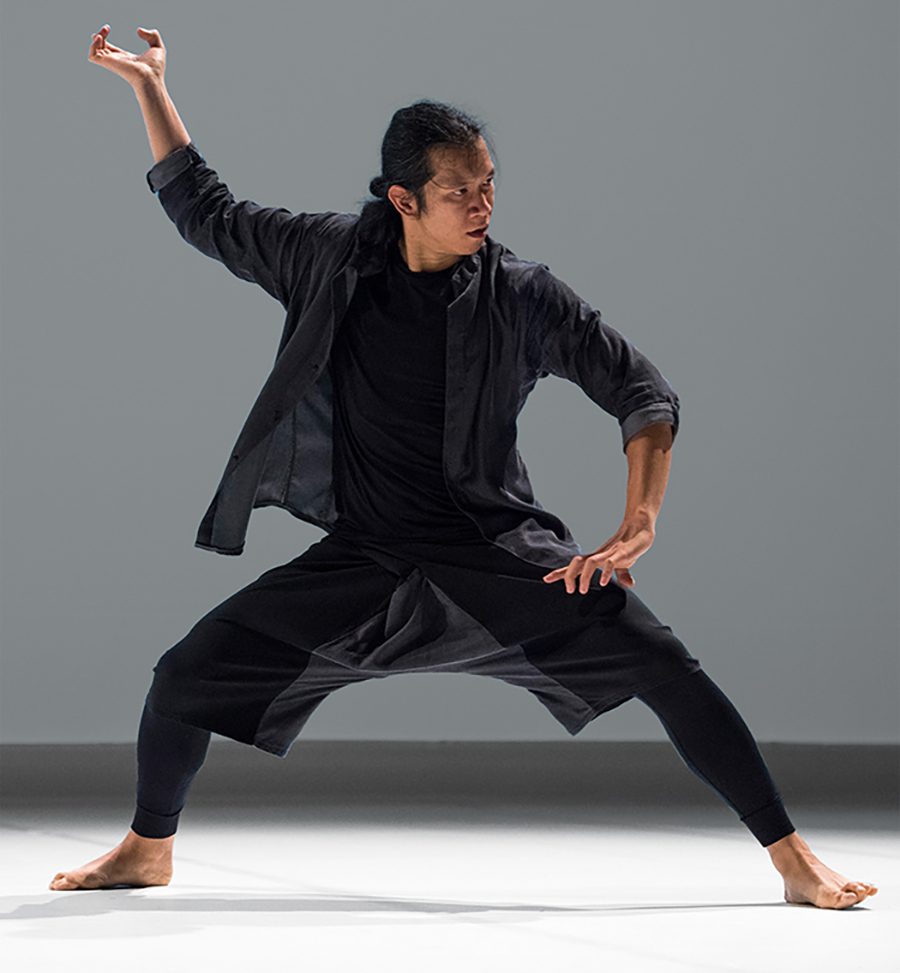 振付家が西洋と東洋、ストリートの動きと古典芸術の動きを借用しながら対話する、文化の交差点に立つソロ。内側には親密な空間、外側には探求の場。この「円」は、ダンサーの身振りに見出されるある種の普遍性と、新たなメカニズムを探求するよう駆り立てる絶え間ない動きを想起させます。