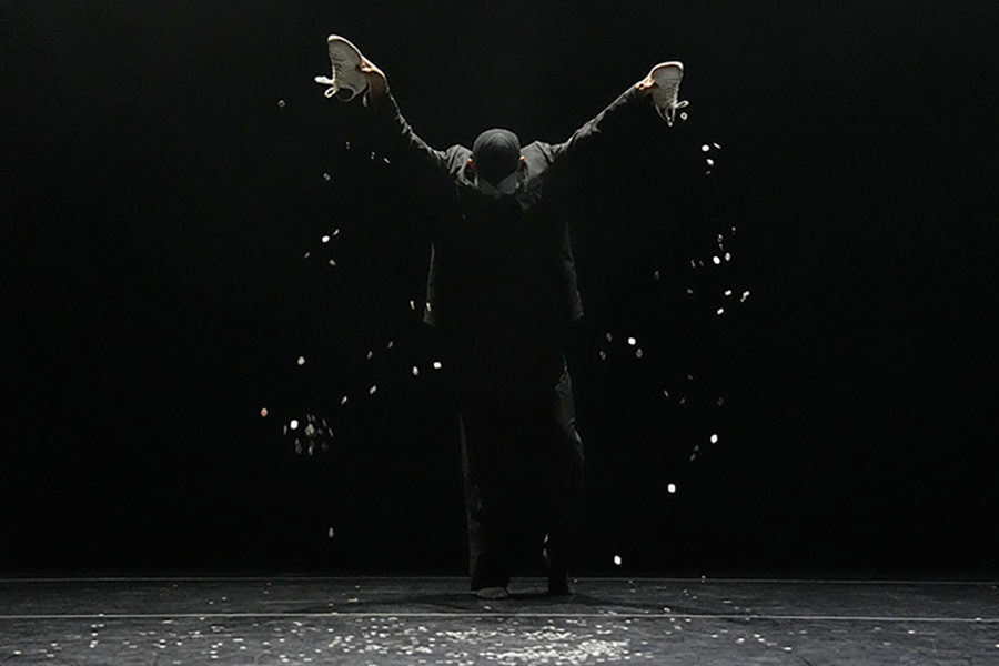 「 Épuiser」はフランス語で「使い切る」というような意味合いの言葉である。ヒジュンは自分の体力を「使い切る」ように踊る。まさに消耗するために踊っているのである。やがて彼の衣服から無数のコインがこぼれ落ち、舞台にばら撒かれていく。そのコインがステージにぶつかる音が彼の悲鳴のようにも、涙がこぼれ落ちる音にも聞こえる。